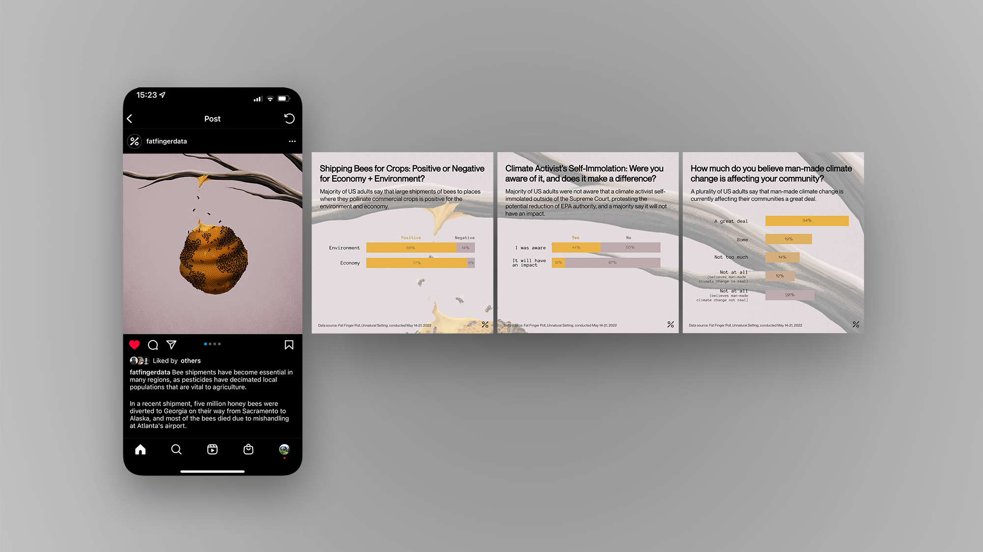 Fat Finger conducted a climate themed poll, centering on climate news from Spring 2022 such as the mass dying of bees in Atlanta and a man self-immolating outside of the Supreme Court.