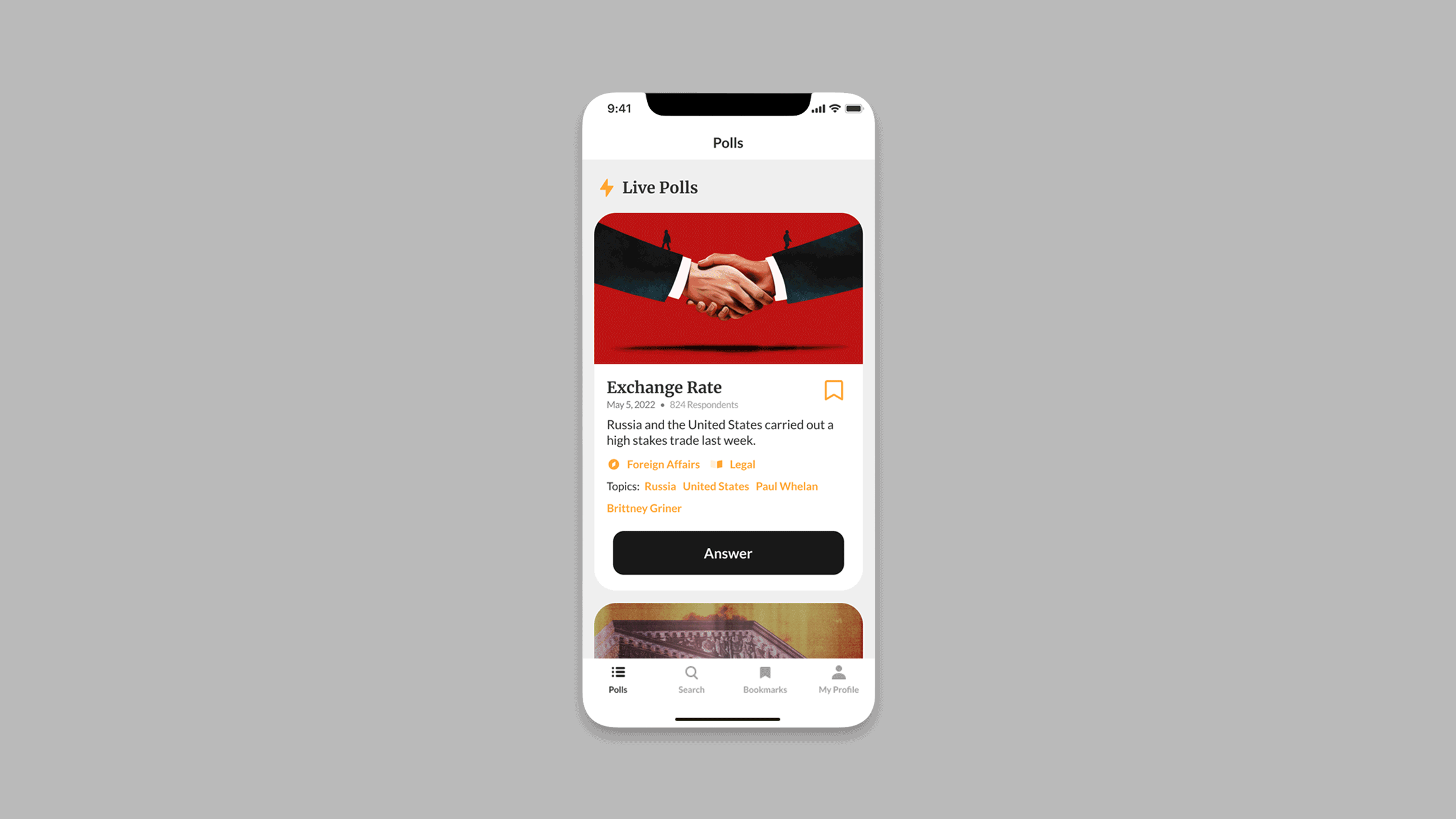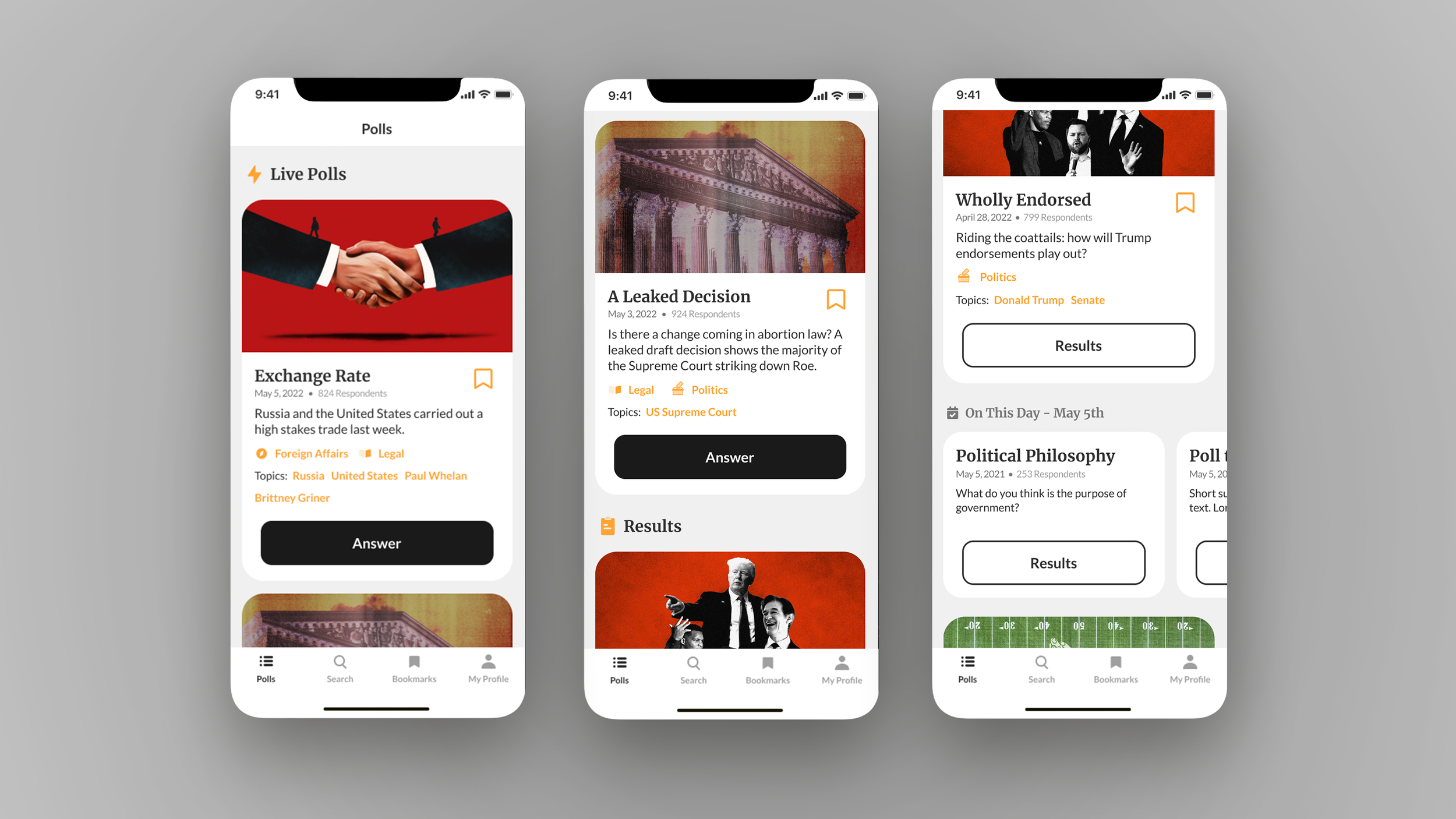 To create a more whole experience, we wanted to begin including an image with each poll, which, due to limited resources and lack of a content team, was put on the back-burner until later versions.