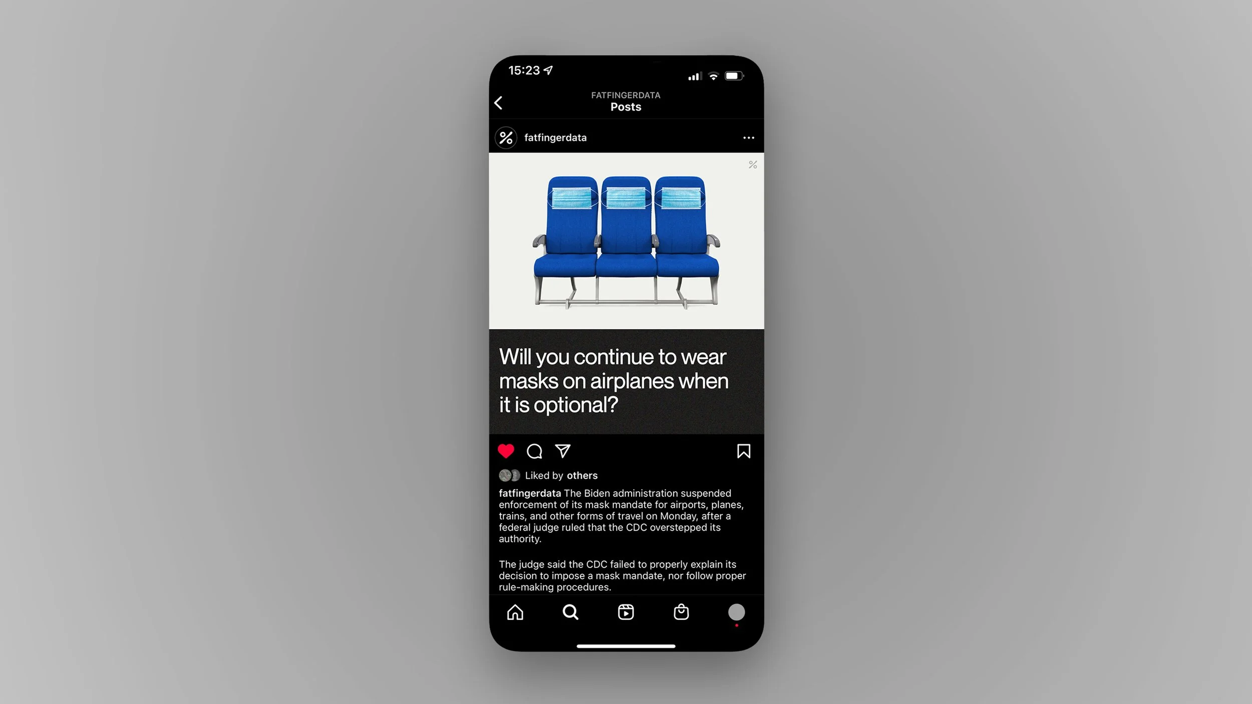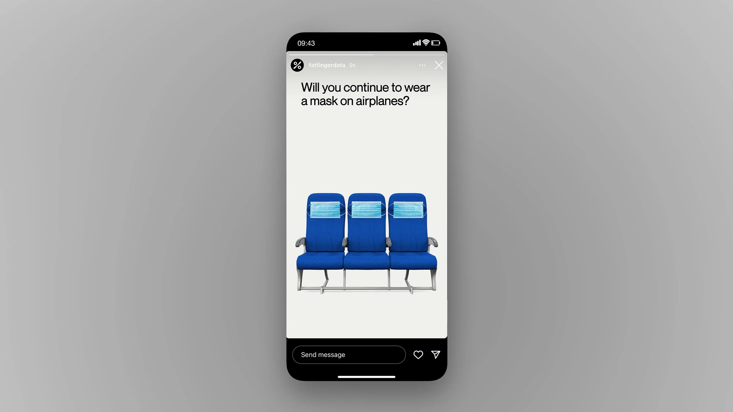Will U.S. Americans continue to wear masks on airplanes? This image was created for a poll on the mask mandate for flying. It was used in multiple digital placements, such as on instagram and in the client's newsletter.